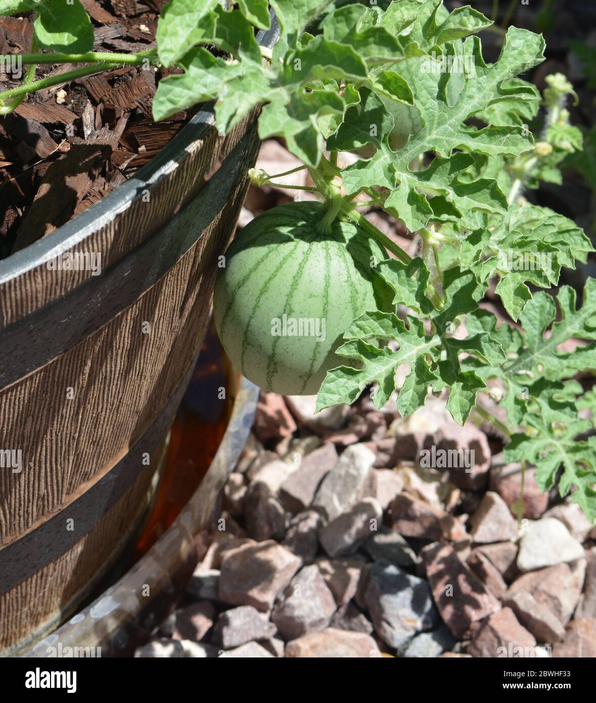 Sugar Baby Watermelon Growing From A Planter Arizona Usa Stock Photo Alamy
